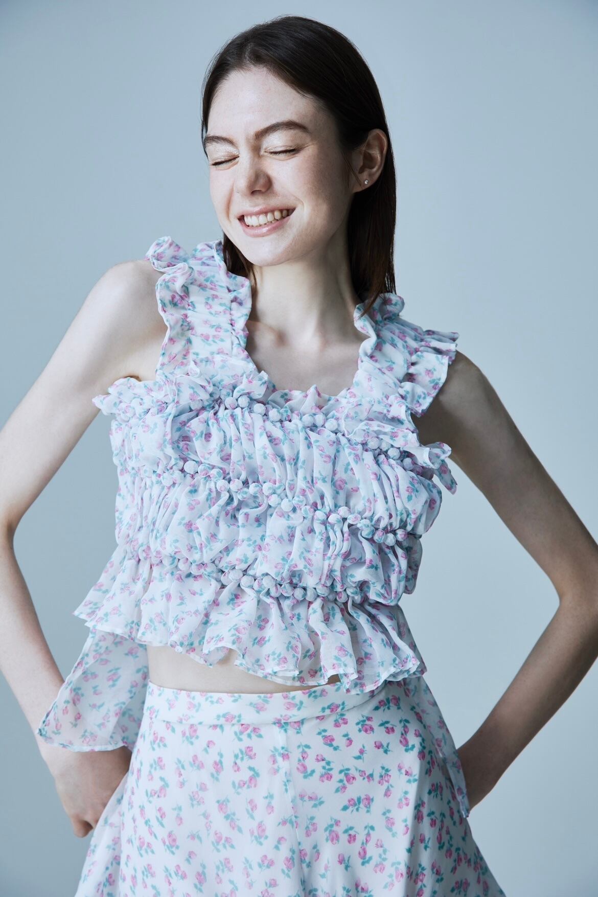 繊細な手仕事による絞りのディティールがポイントのビスチェ。
